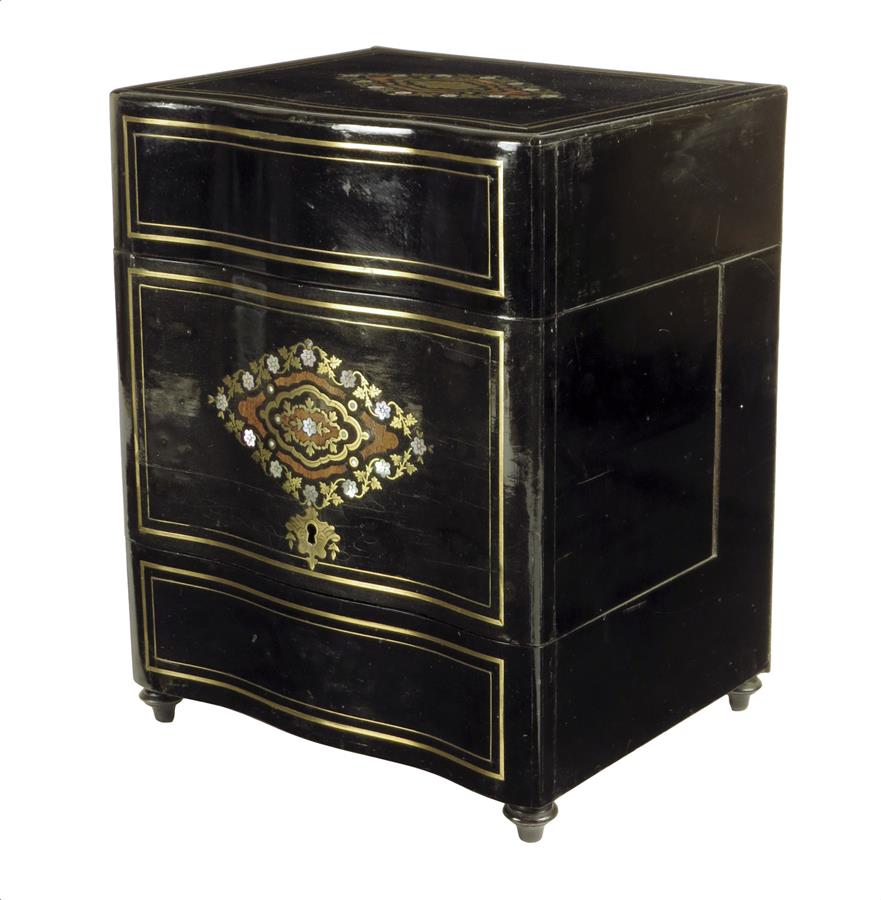A mid 19th century French ebonized and brass inlaid decanter box