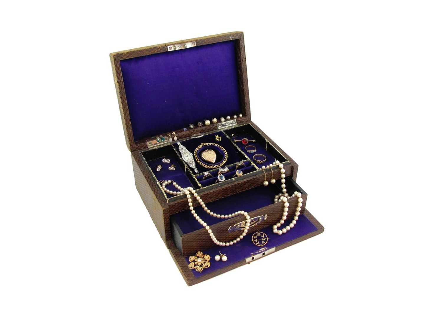 A jewellery box containing various items of jewellery etc. Including an Art Deco lady's platinum...