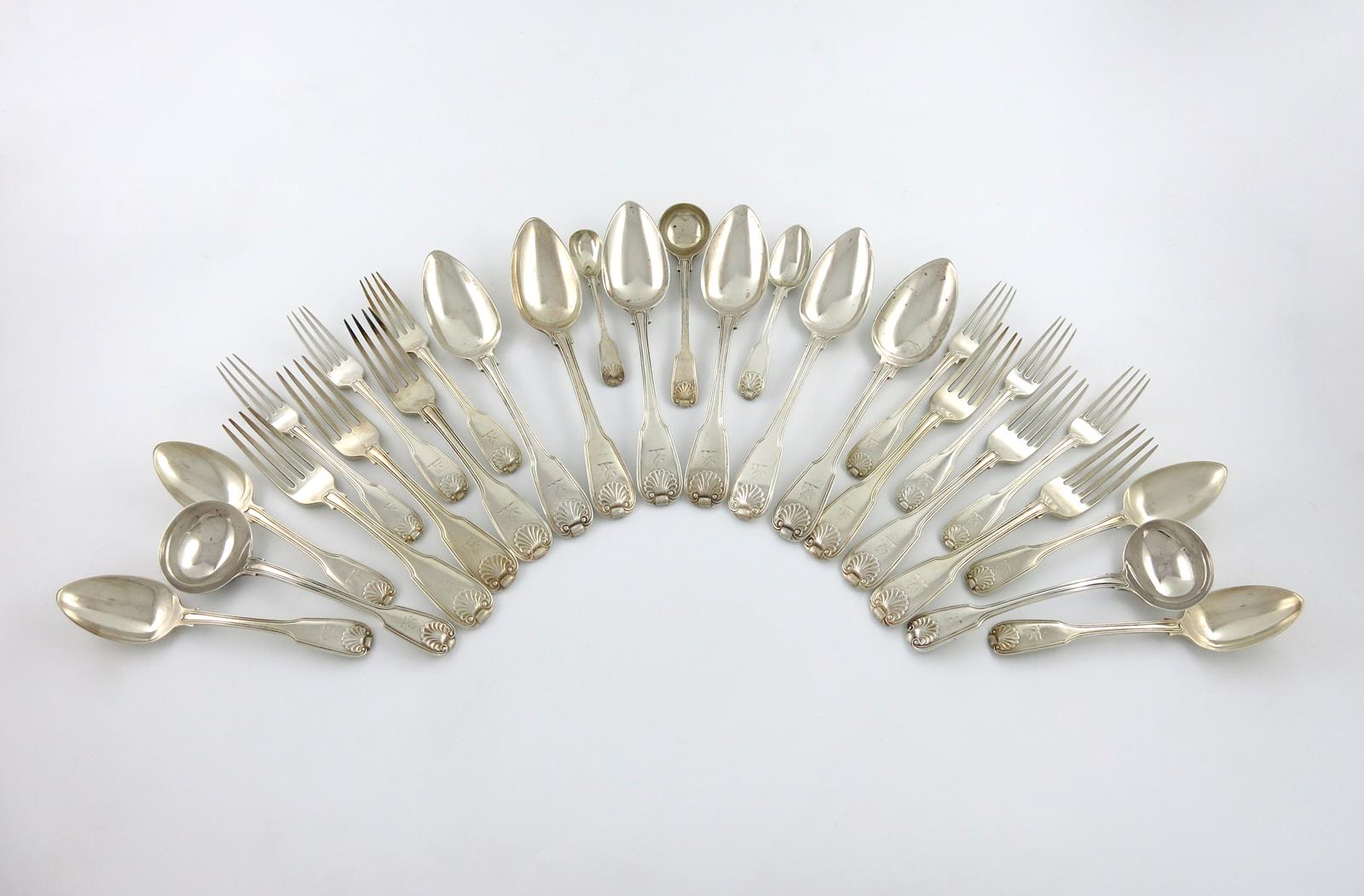A matched collection of George III and George IV silver Fiddle, Thread and Shell pattern flatware,
