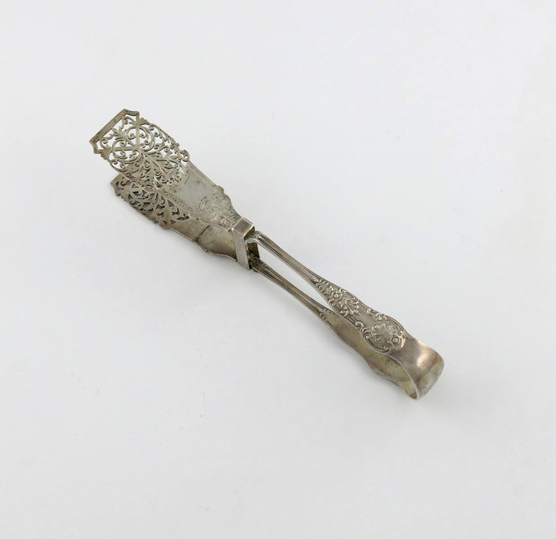 A pair of late-Victorian silver Queen's pattern serving tongs,