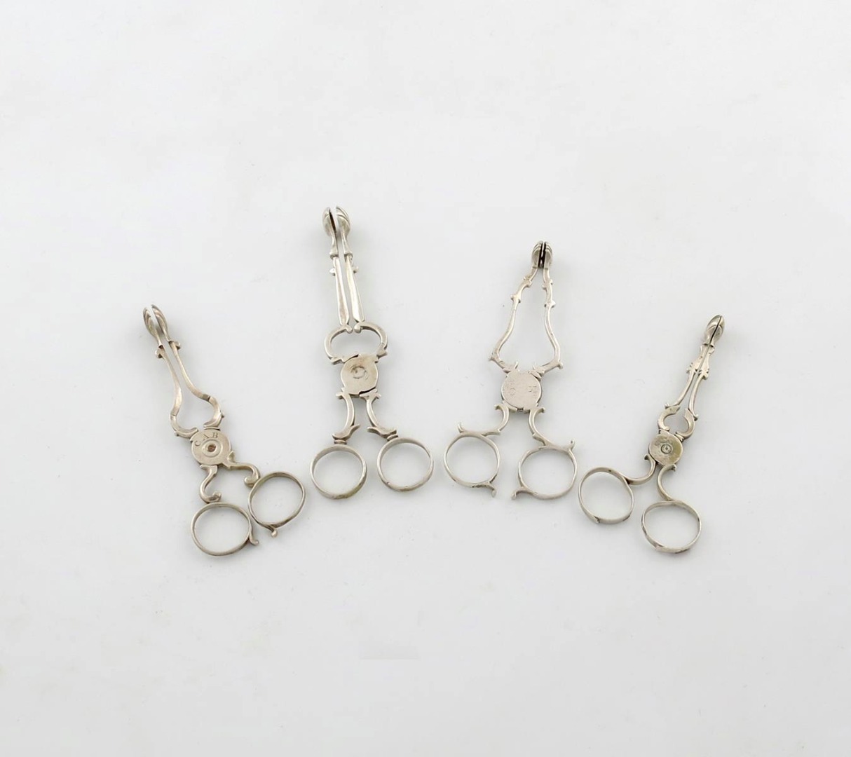 comprising: an Irish pair, Dublin, and three London pairs, circa 1760, shell bowls, scroll arms, ring handles, two with scratch initials, approx. weight 4oz. (4)