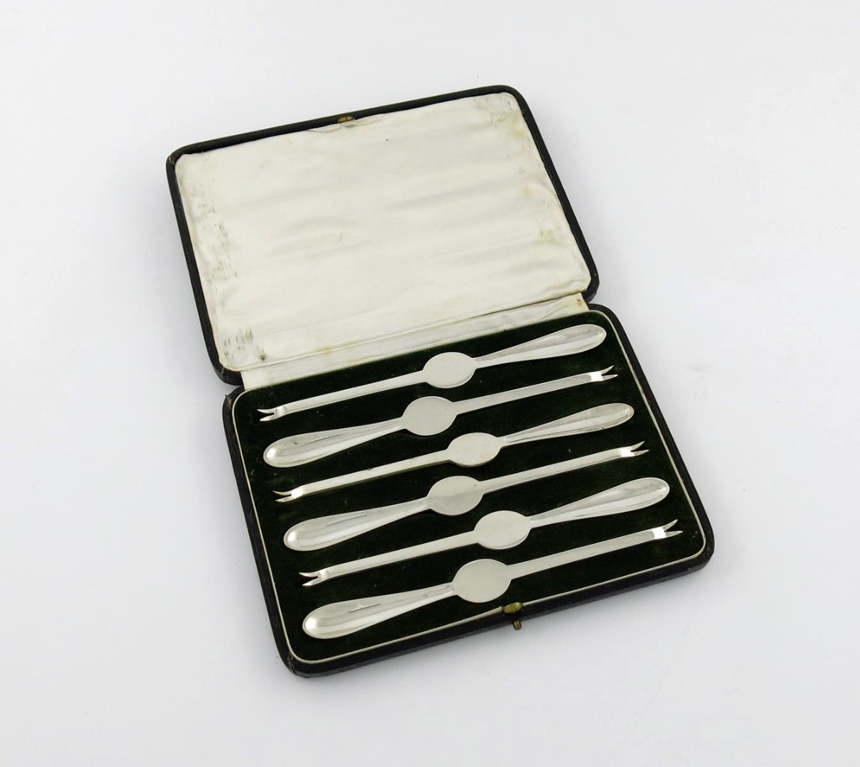 A cased set of six silver lobster picks,