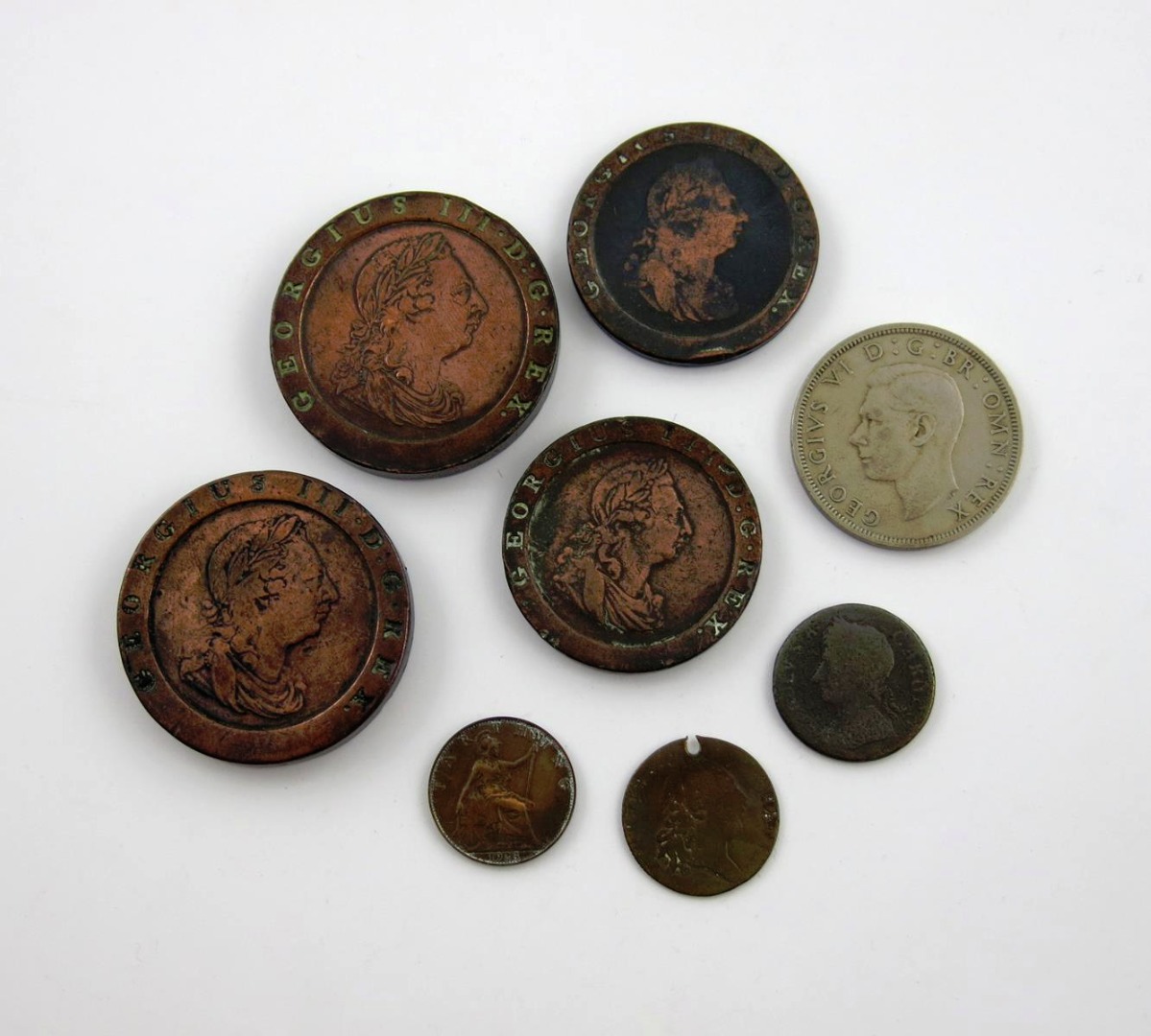 George III, "Cartwheel" Twopences and Pennies, 1797, good fine; together with a mixed selection of Georgian copper coinage, regal and token issues; European copper of the same period; World coinage, 18th-19th century; and a few modern issues; sundry medallions, white metal, including Grand National Jubilee, 1814; and others, varied state. (qty)
