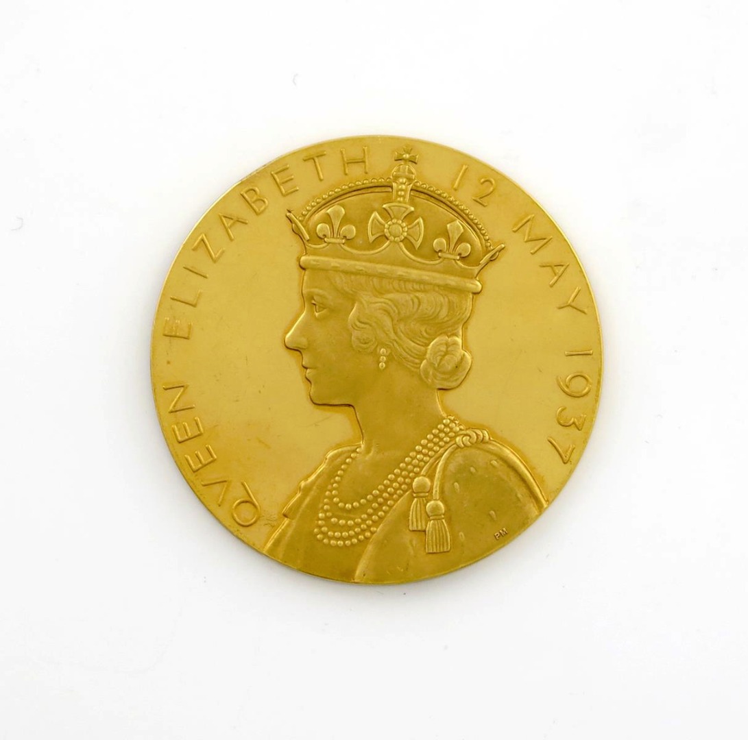 George VI, Coronation 1937, official large Gold Medal, 1937, by Percy Metcalfe, for the Royal Mint, crowned bust left, rev crowned bust of Queen Elizabeth left, 57mm, 122.6gms (BHM 4314) in original case of issue. Minor handling marks, scuffs and bruise, extremely fine with much brilliance.