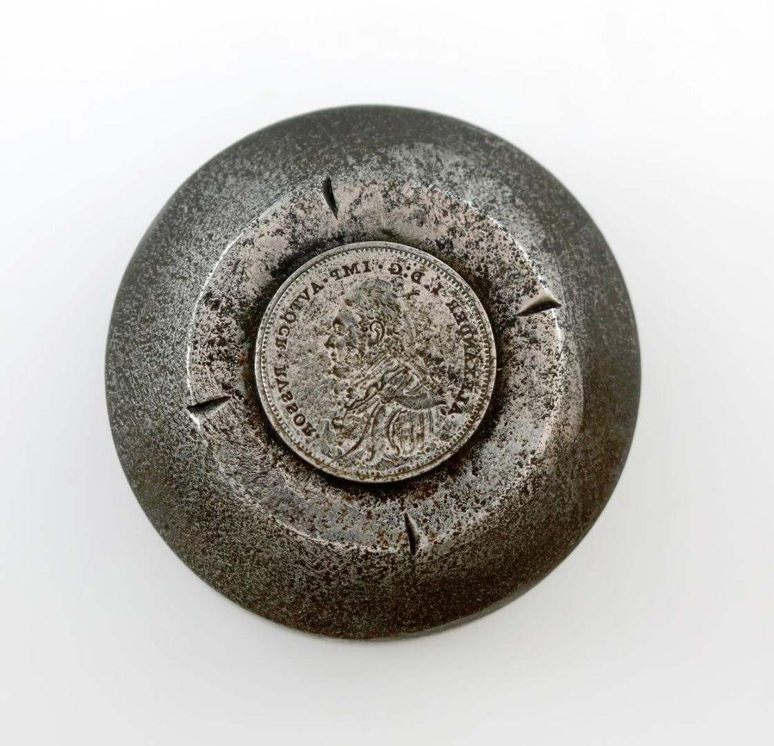 Russia, Alexander I (1777-1801-1825), Pattern Imperial, 1804, the original obverse die, by Conrad Heinrich Küchler, his uniformed bust in intaglio, ALEXANDER I D:G IMP AVTOCR RVSSOR, 52 x 60mm (Pollard 29 (ii); Diakov:293.2; Bitkin Z 921(837); Severin:2550), alignment marks at compass points around 'coin'. Good fine, actual coin surface showing rust damage.