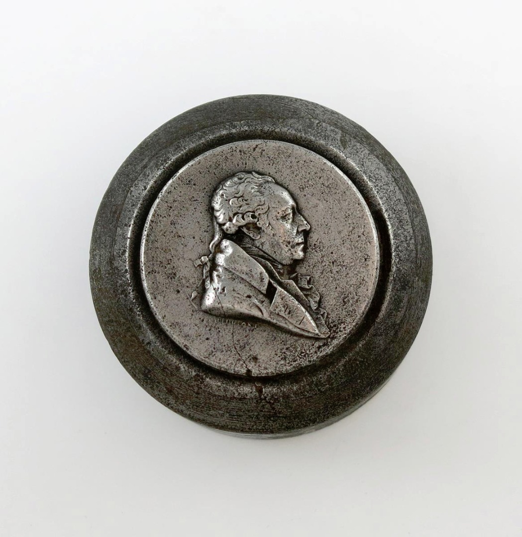 Work on the Memorial Medal commenced early in 1812 and as Rouw's wax of 1803 had been broken, he had to prepare a new one for Pidgeon to work from. It was finished in 1815, and the reverse was commenced in November of that year. The obverse squeeze illustrated by Pollard, pl XXIII, 3, differs from the present bust in having no tie to the queue. Pollard quotes Matthew Robinson Boulton writing that it had been completed, "after innumerable obstacles & disappointments…. And finally by the death of the engraver in the progress of the work ….".