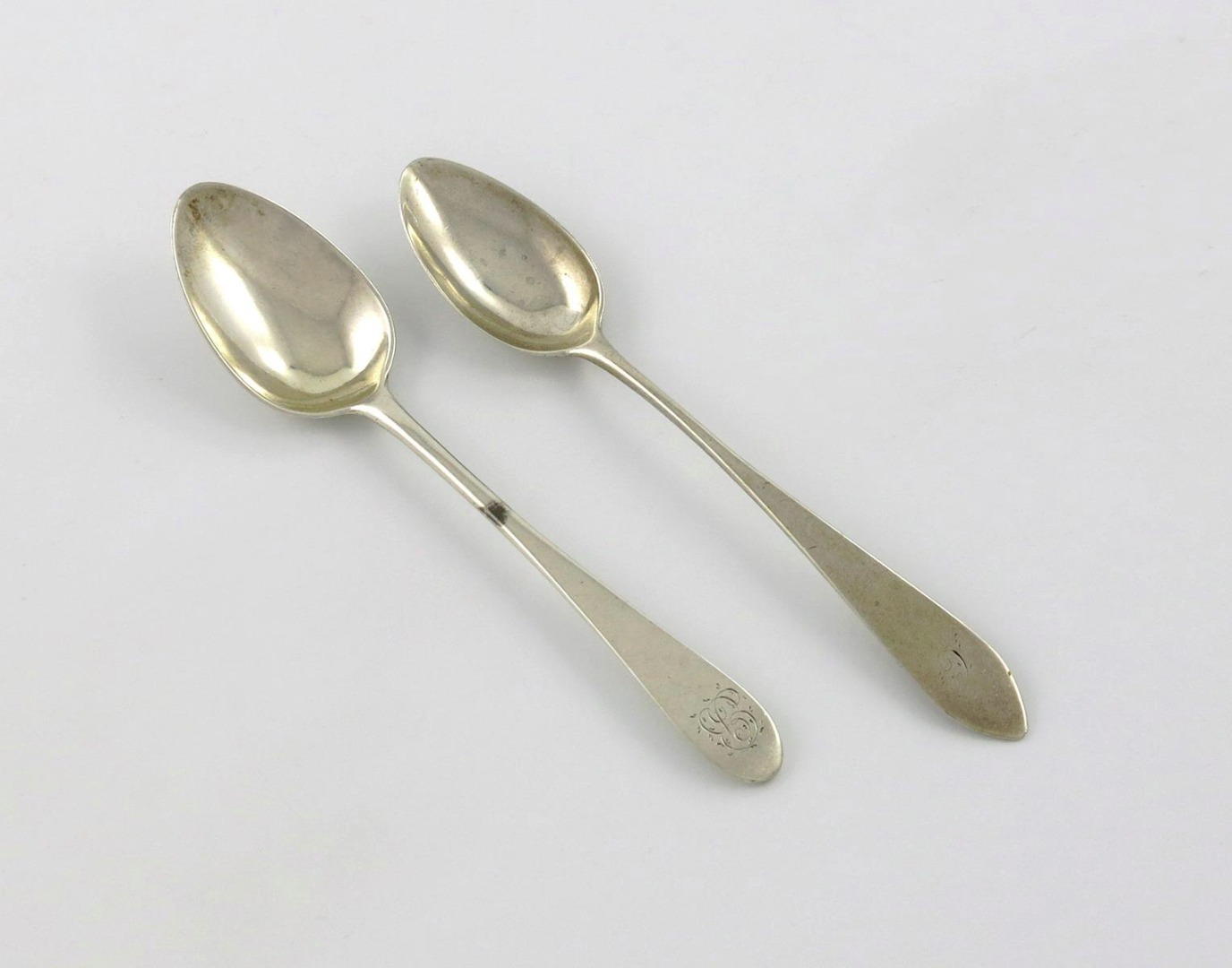 the terminal with an initial, plus a George III Scottish provincial silver teaspoon, by Charles Jamieson, Inverness circa 1800, the terminal with initials, approx. total weight 0.8oz. (2)