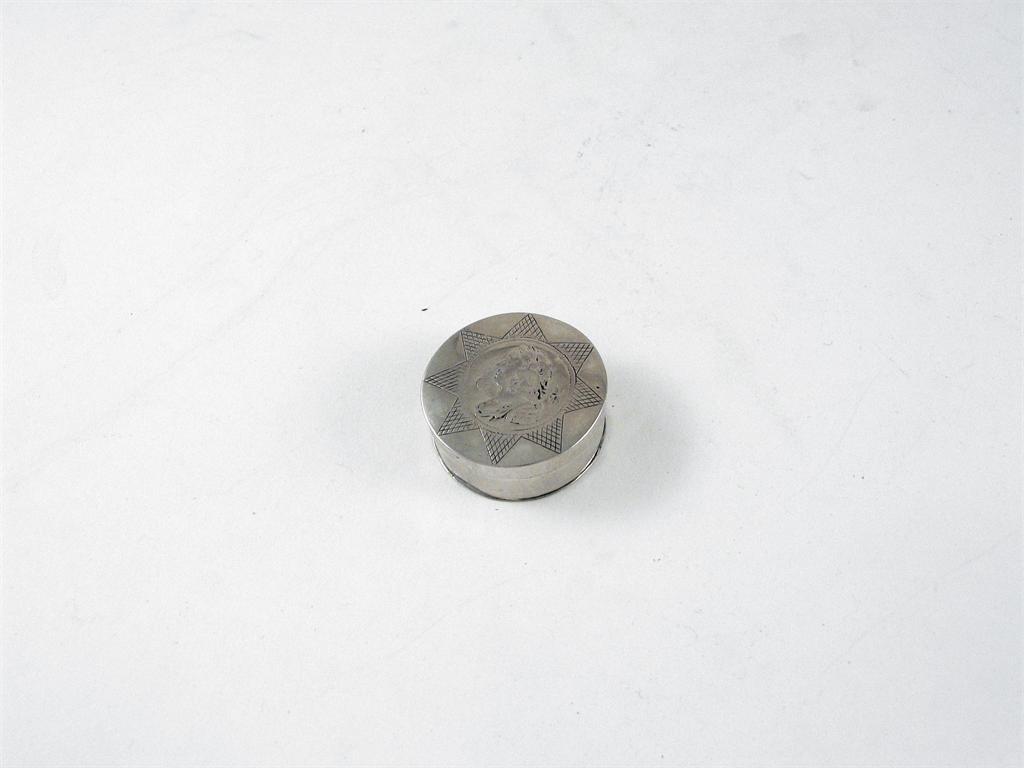 A George IV stamped wine label, with shell and fruiting vine border, pierced 'Madeira', by Charles Rawlings, London 1825.