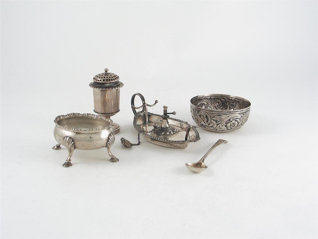 Seven various wine labels: A pierced vine label, incised 'PORT, by John Tongue, Birmingham 1855, a 19th horn 'Brandy' label, four mother of pearl labels and an Old Sheffield plate label with a scrolling fruiting vine border, incised 'Sherry'. (7)