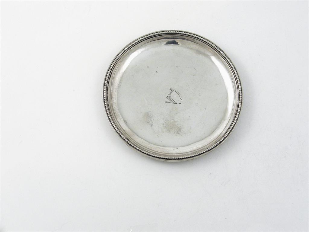 A cut-out letter 'H' wine label, incised with scrolling leaves, by John Law, (mis-struck), probably Irish.