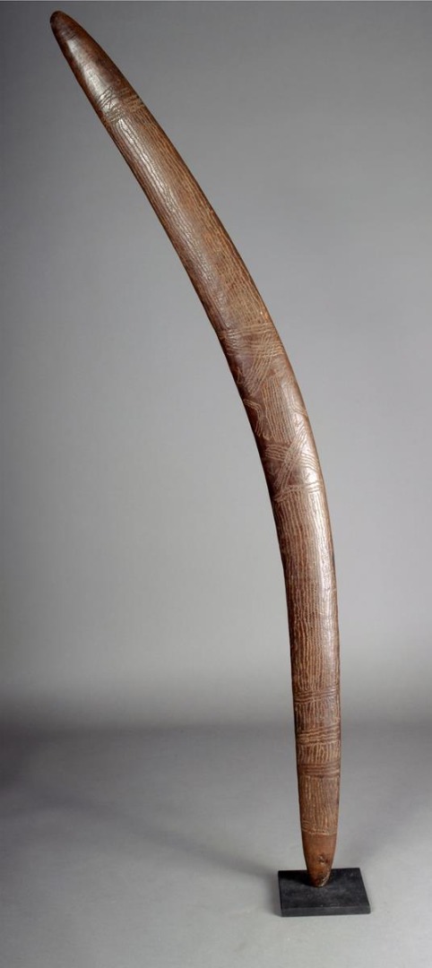 An Aborigine large club, with tooth engraved linear decoration to both sides, 103.5cm long.