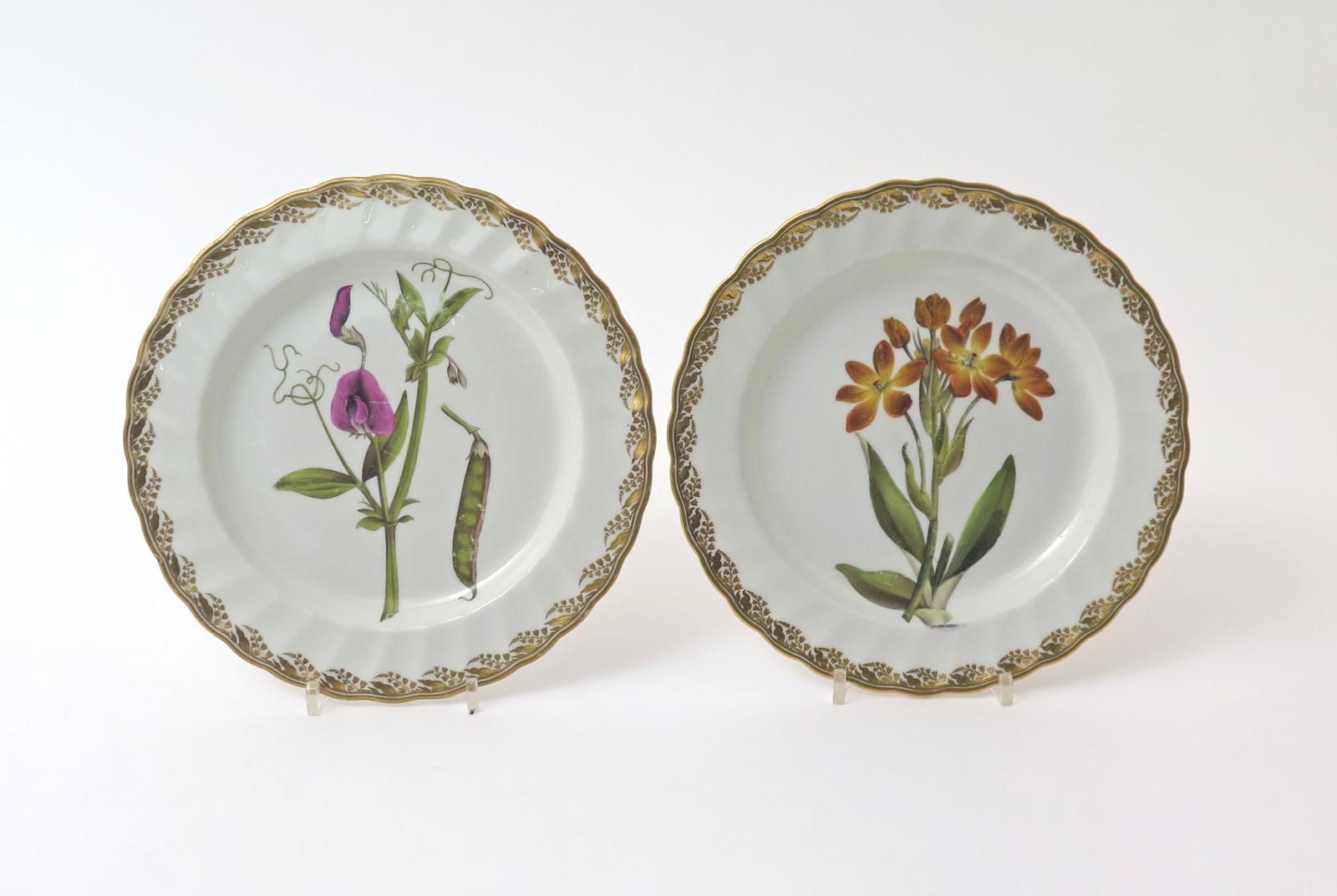 A pair of Derby botanical dessert plates c.1800
