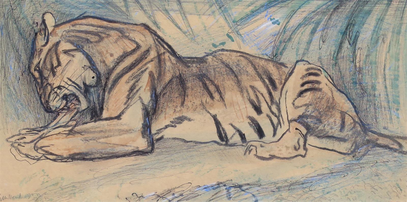 ‡Elsie Marion Henderson (1880-1967) A tiger eating