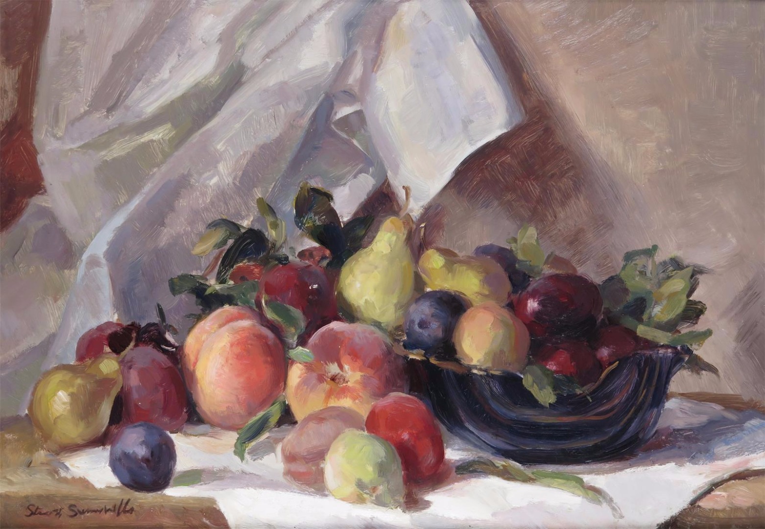 ‡Stuart Scott Somerville (1908-1983) Still life of fruit with a bowl Signed Oil on board 35 x...