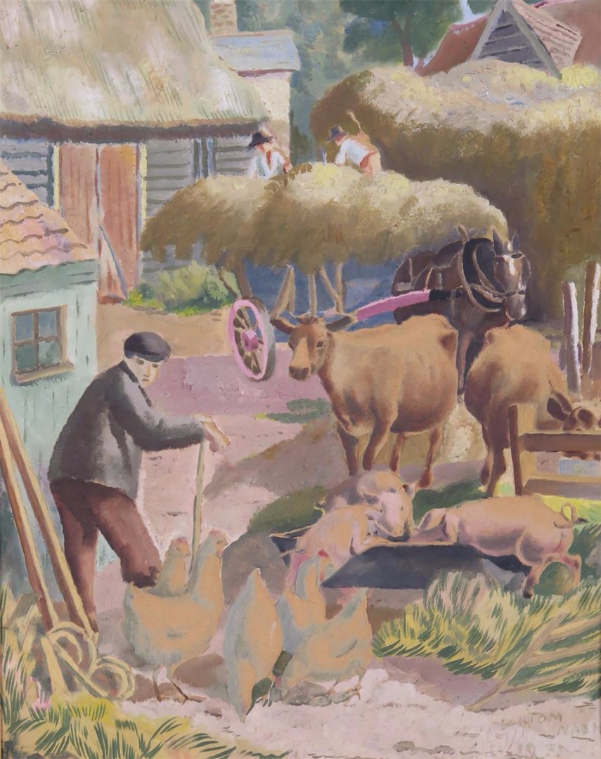 ‡Thomas Saunders Nash (1891-1968) The farm yard Signed and dated 1935 Mixed media on board 35 x...