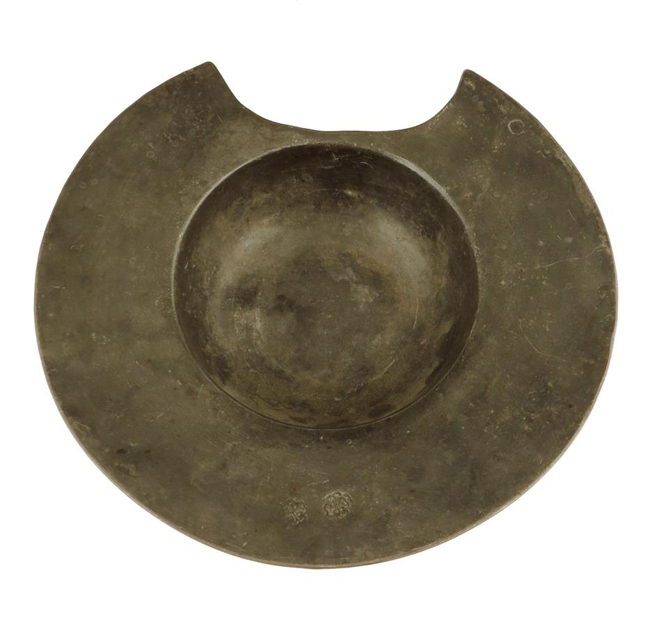 A pewter barber's bowl, with two cross marks, 17th / 18th century, 25.7cm diameter.