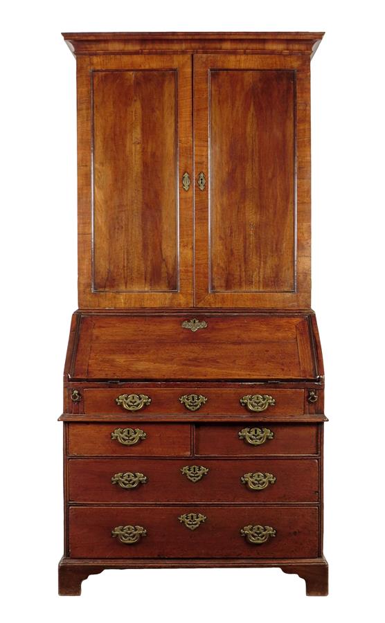 A walnut bureau bookcase