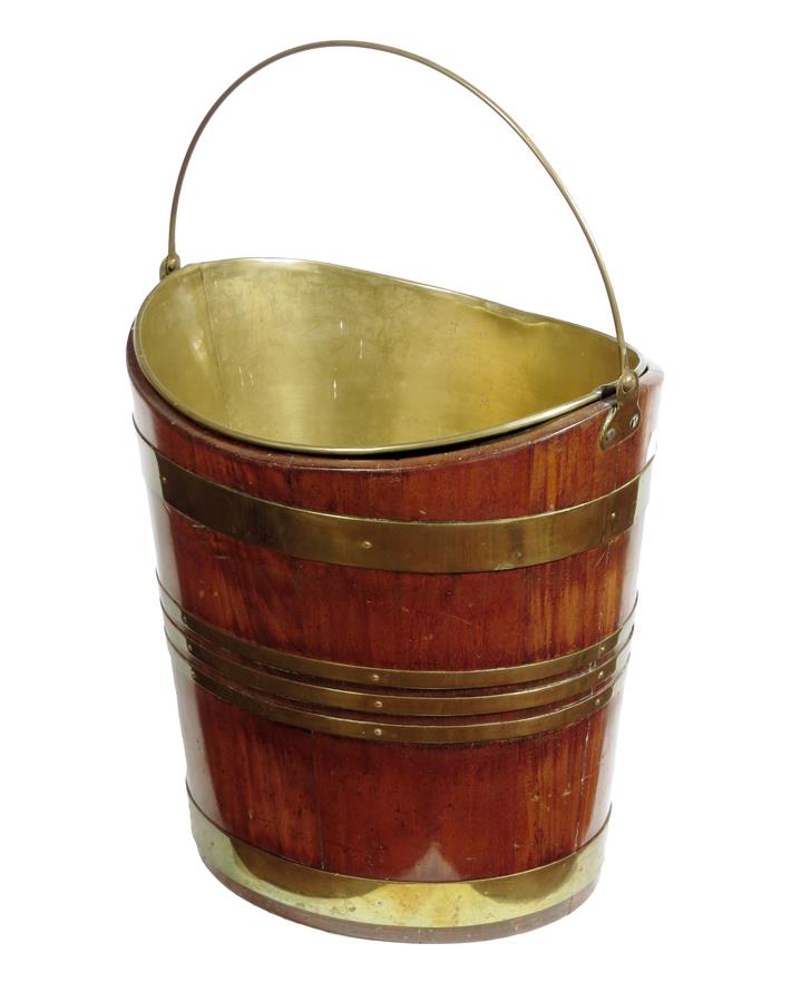 A mahogany and brass bound bucket, with a brass lift-out liner and a swing handle, 33.4cm high, 33cm wide.