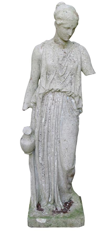 A Victorian composition stone garden figure of a classical lady, holding an ewer, 156cm high.