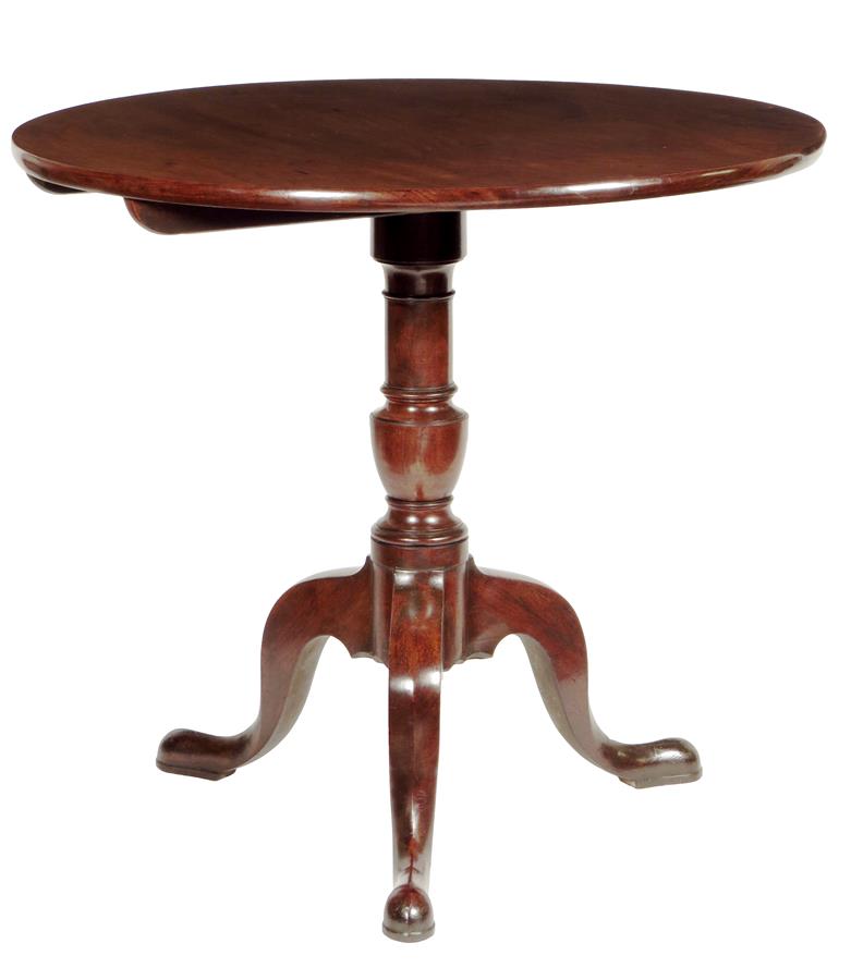A George III mahogany tripod table, the circular tilt-top on a vase turned stem, 71.5cm high, 78.5cm diameter.