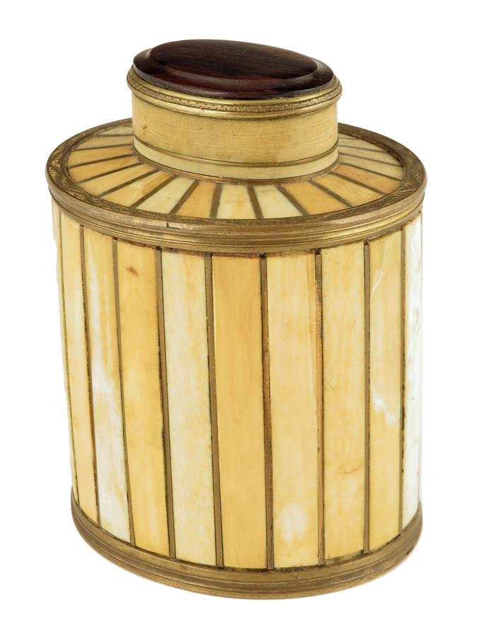 λ A 19th century ivory oval tea caddy/canister