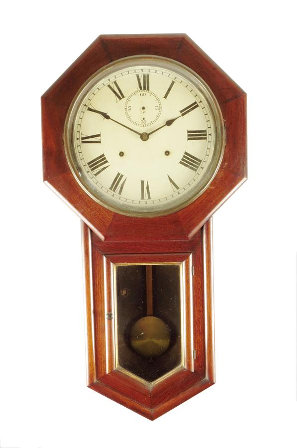 A mahogany drop dial wall clock
