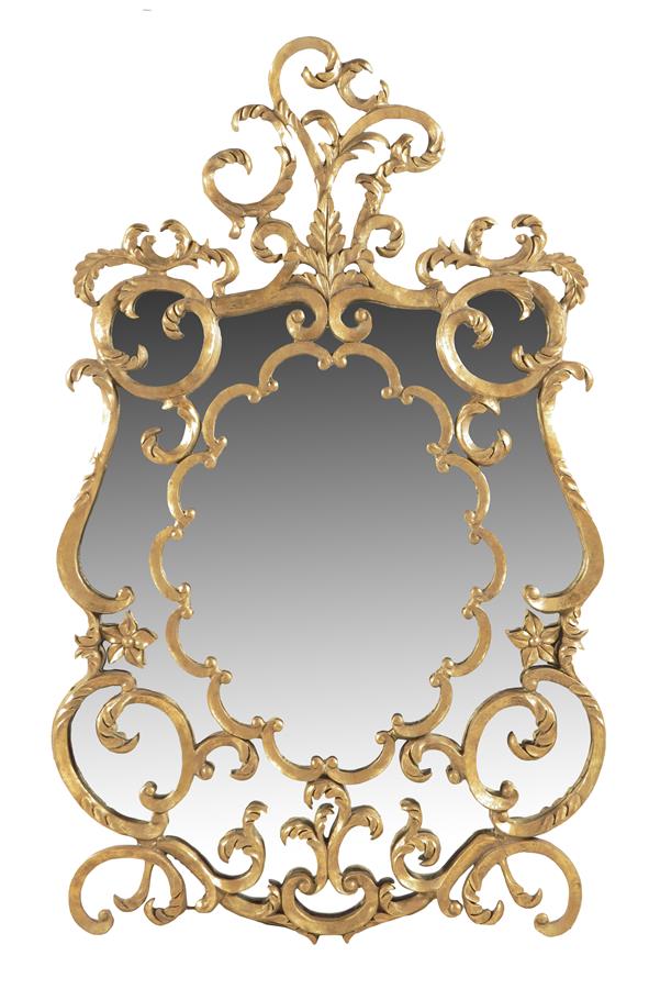 An 18th century style gilt composition and metal framed wall mirror, decorated with scrolls and flowers, mid 20th century, 155.1 x 93.2cm.