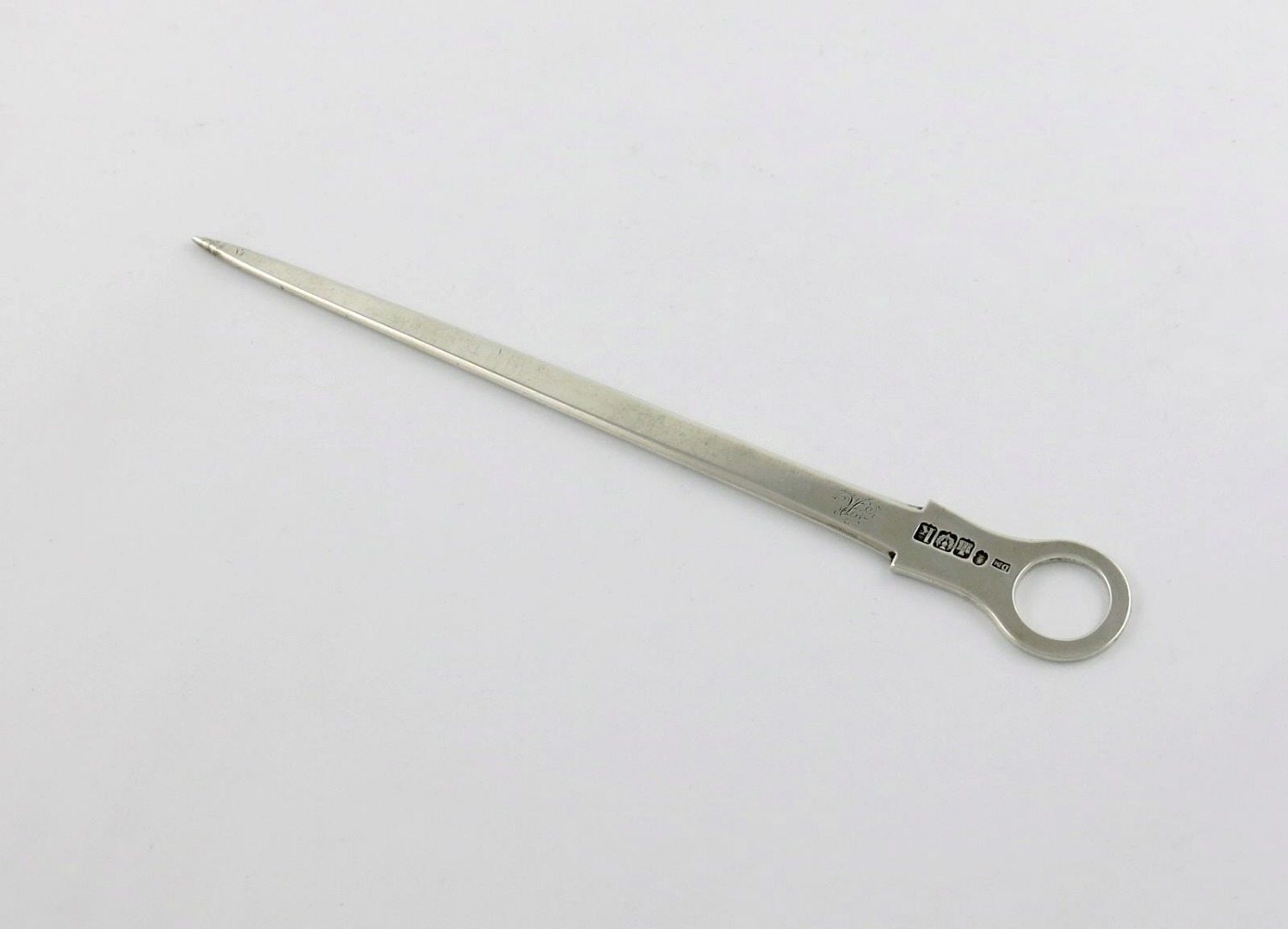 tapering form, ring handle, with an initial, length 23cm, approx. weight 2oz.