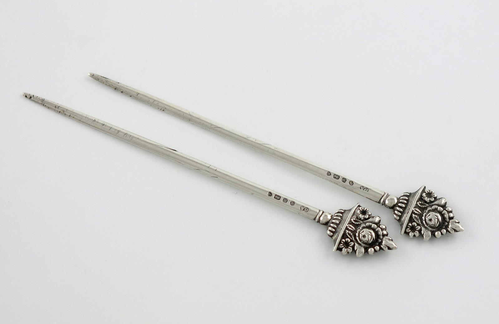 A pair of Victorian silver poultry skewers