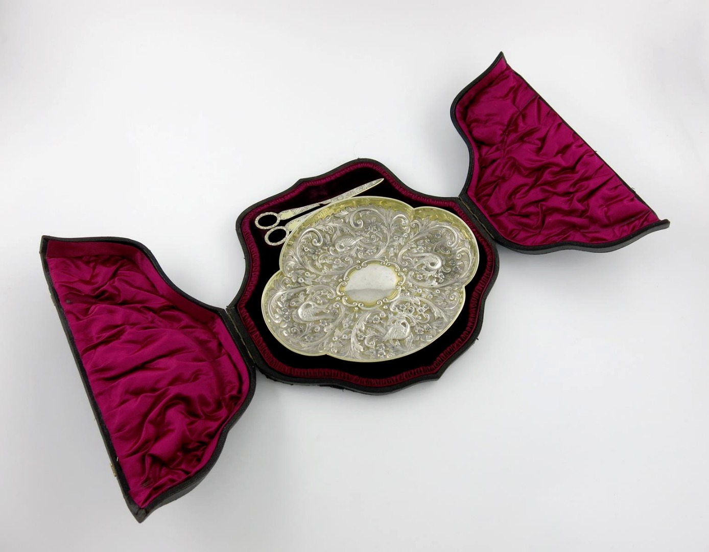 A Victorian silver-gilt grape dish and pair of grape scissors,