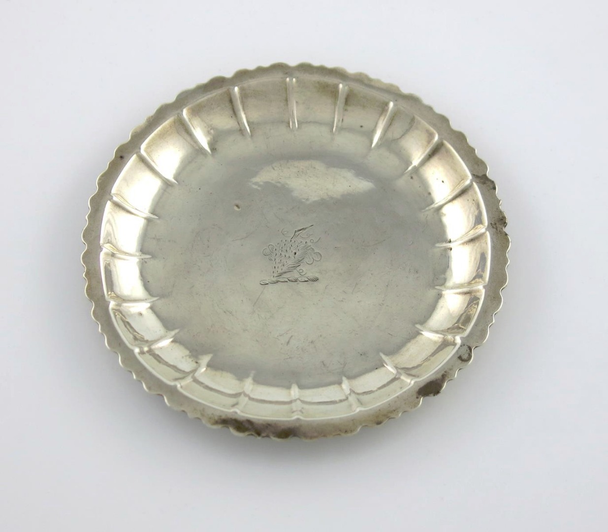 fluted circular form, the centre with a crest, diameter 12.5cm, approx. weight 2.7oz.