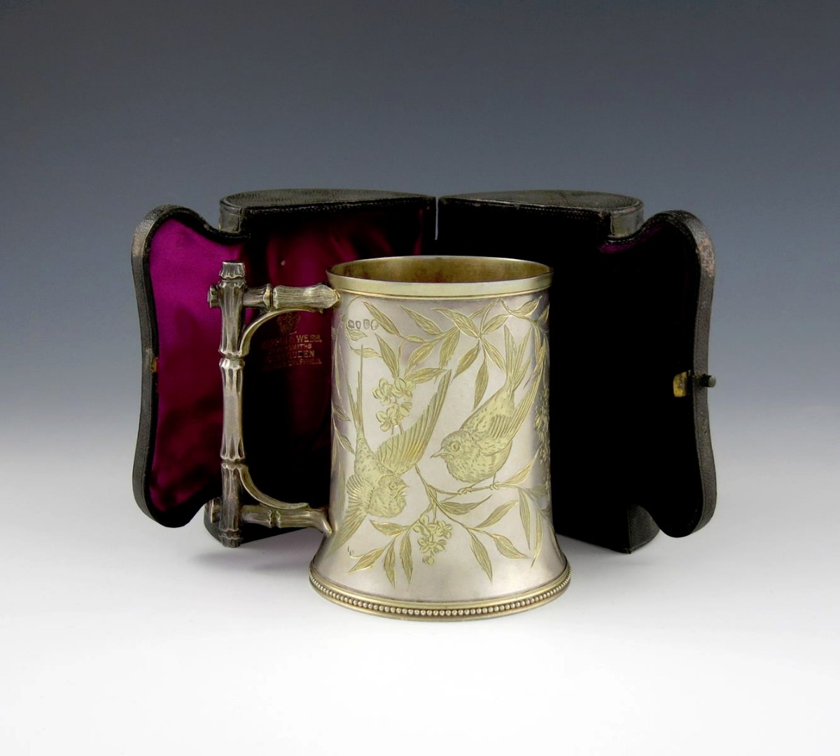 A Victorian Aesthetic movement parcel-gilt silver mug,
