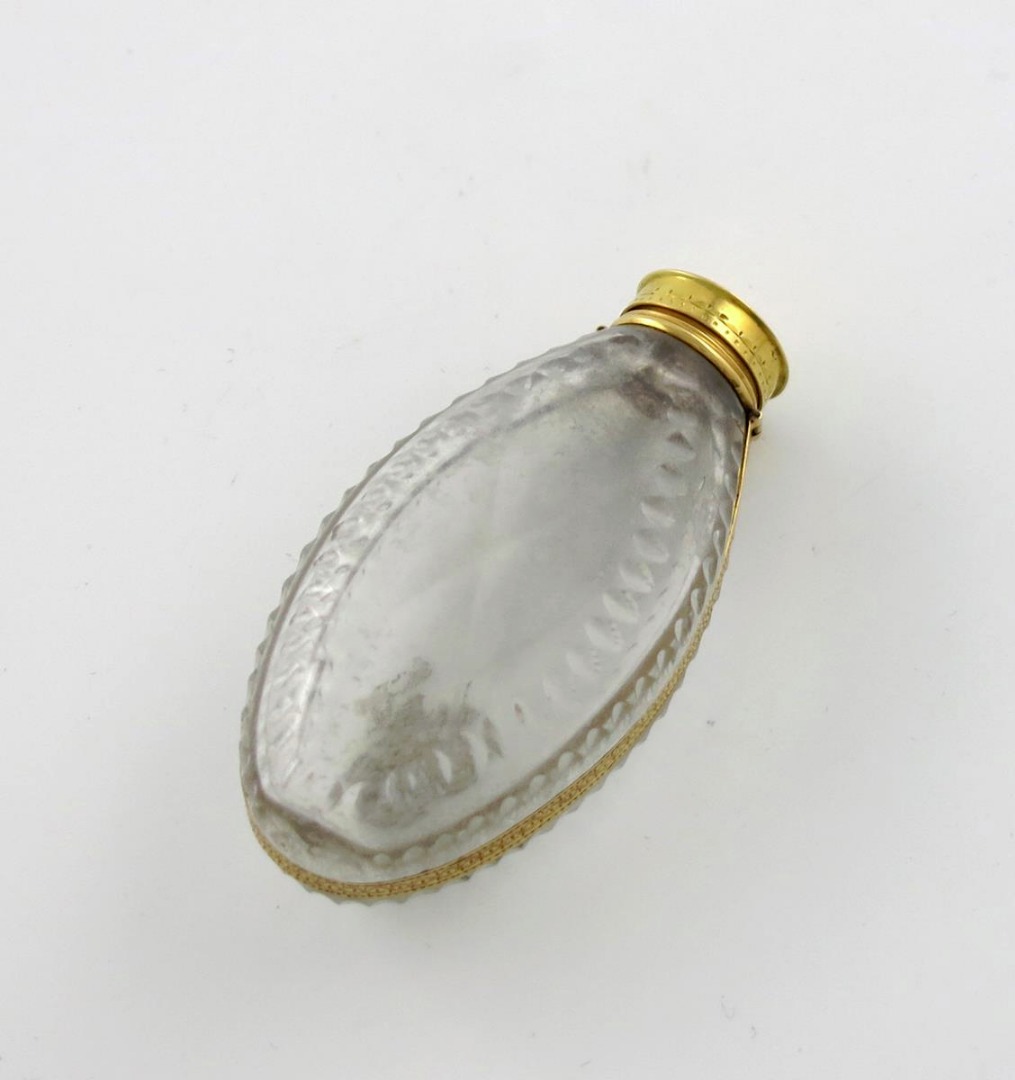 faceted oval form, bright-cut borders, hinged cover, length 6.5cm.