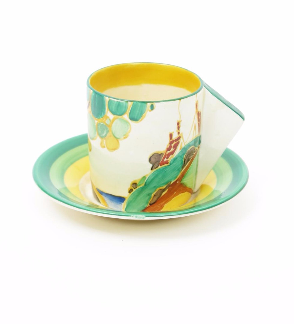 'Secrets' a Clarice Cliff Bizarre Conical coffee can and saucer