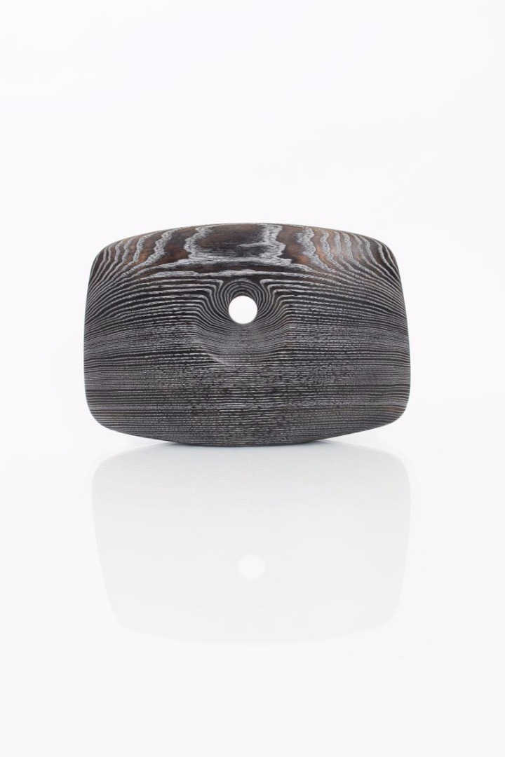 sculpture with aperture, a burnished oak sculpture, signed ES in roundel 42 cm. wide, 28cm high