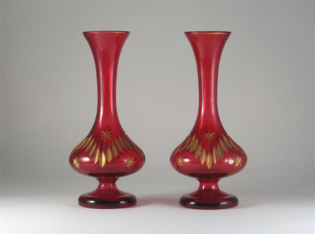 A pair of ruby flashed glass vases