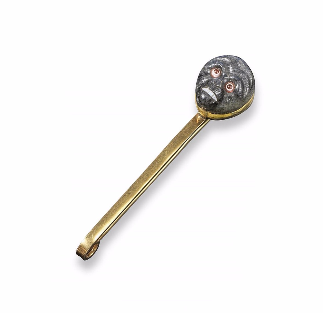 A late 19th century labradorite monkey brooch