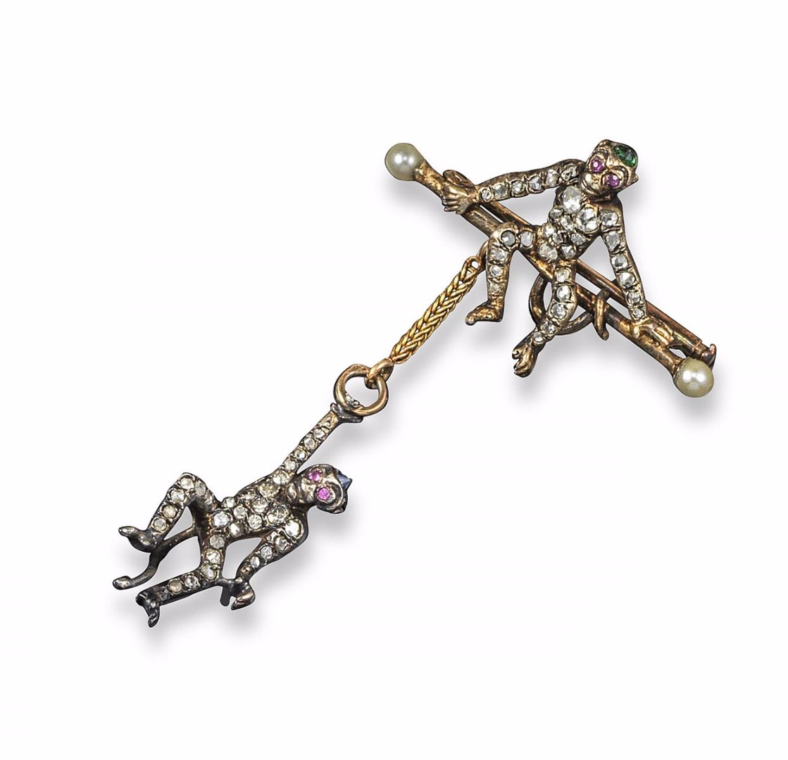 A French double monkey brooch