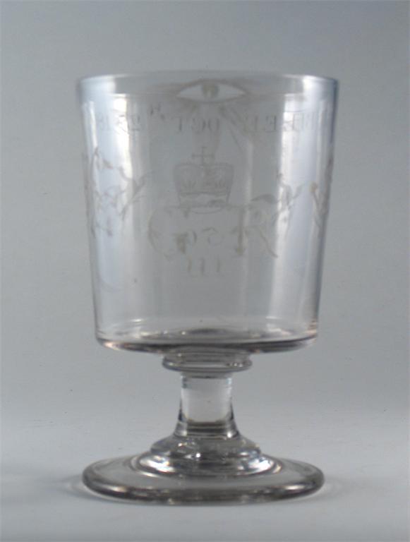 A good George III commemorative goblet, inscribed 'Jubilee Oct R 25 1809' above a crown and with a 'GR III' monogram to the reverse, beneath the all-seeing eye, 19.4cm.