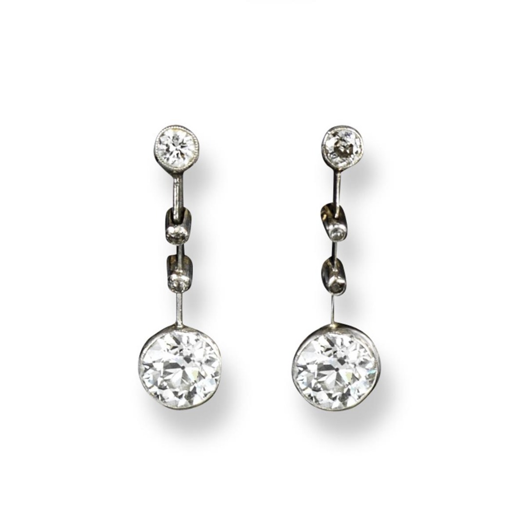 A pair of diamond drop earrings