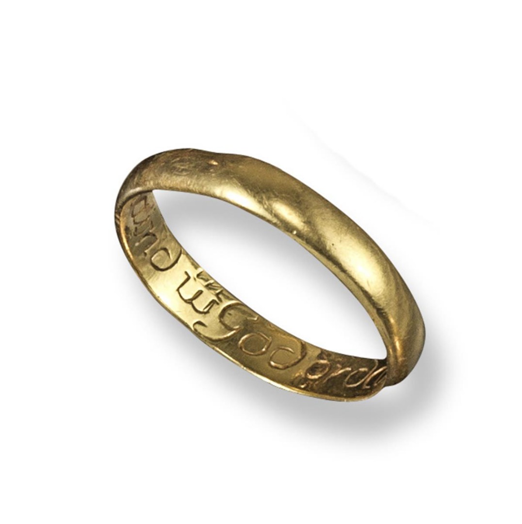 An 18th century gold posy ring, engraved to the interior 'I have obtaind in God ordaind'. Marked with initials KL. 3.9g, size Q.