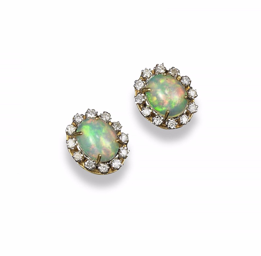 A pair of opal and diamond cluster earrings