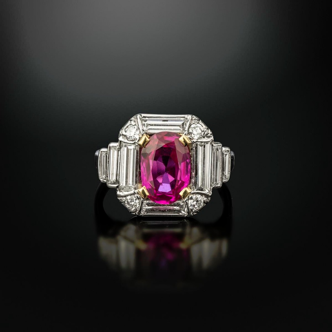 Accompanied by report number 08440 dated 30th August 2013 from The Gem and Pearl Laboratory, London stating that the oval-shaped ruby weighs 2.05cts and is a natural ruby with no evidence of heat treatment. Origin opinion: Burma.