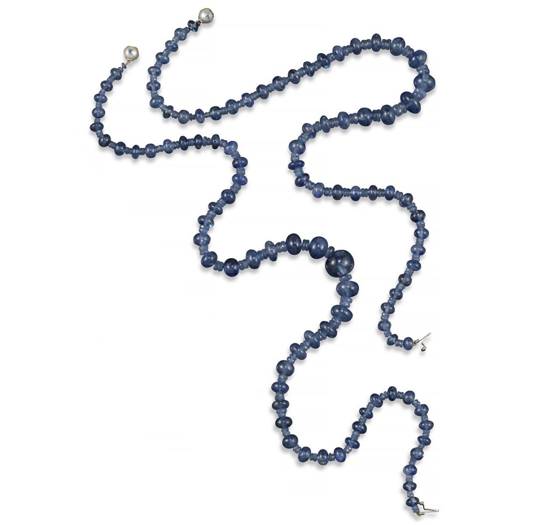 A graduated sapphire bead necklace