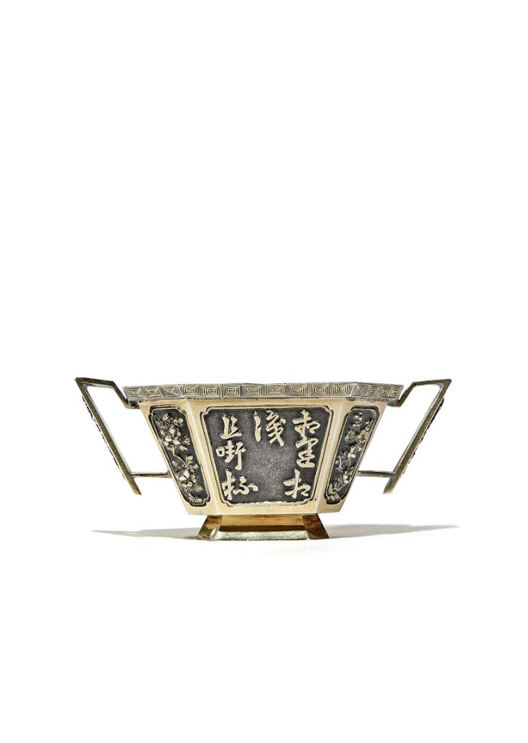 A CHINESE SILVER GILT OCTAGONAL TWO-HANDLED CUP QING DYNASTY Decorated to the exterior with...