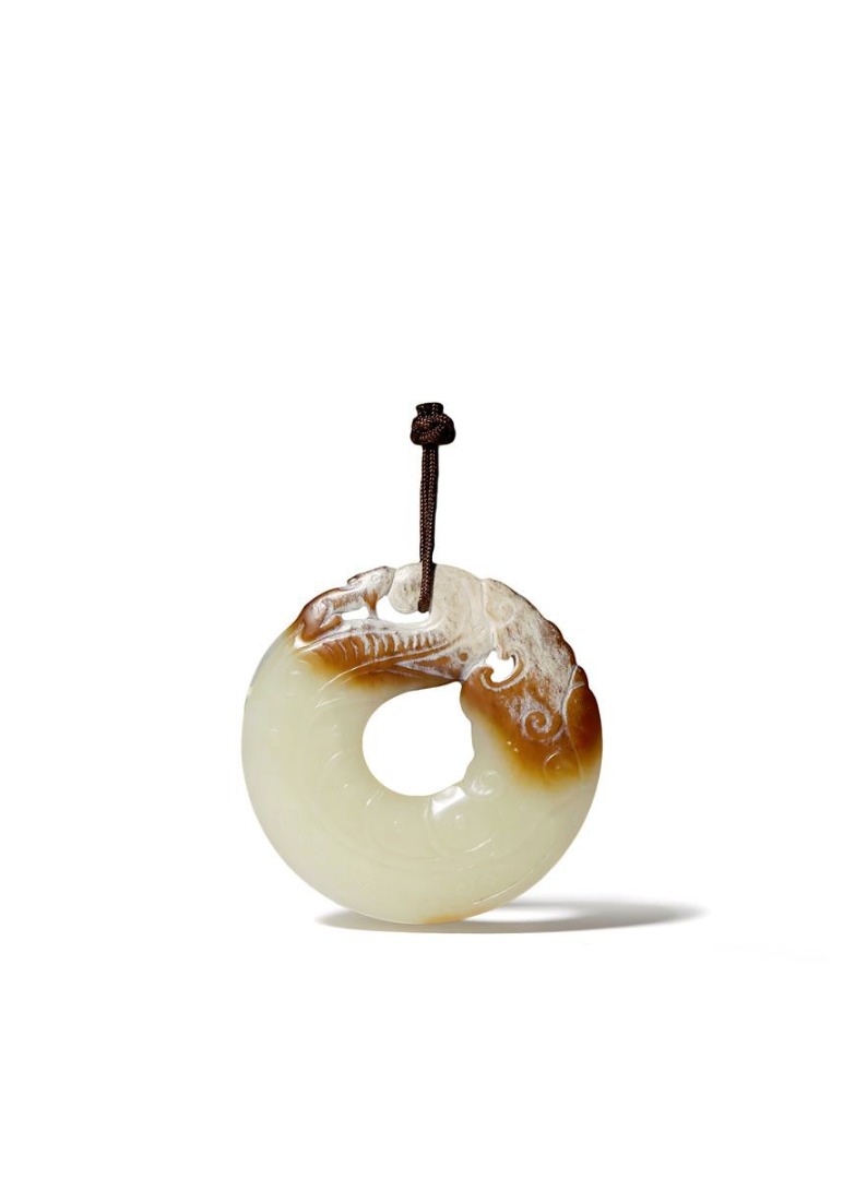 A CHINESE PALE CELADON JADE ARCHAISTIC DRAGON PENDANT QING DYNASTY The flattened stylized body...