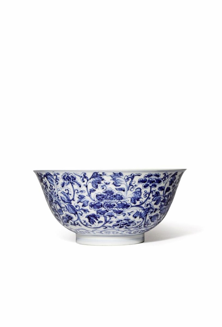 Painted to the exterior with a dense foliate design of peony, chrysanthemum, lotus and other flowers, the interior with a central roundel of peony, 20.5cm.