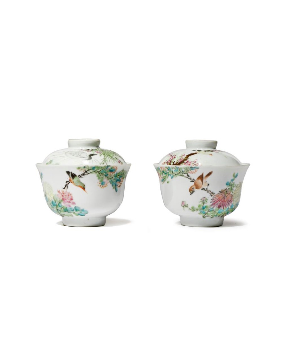 A PAIR OF CHINESE FAMILLE ROSE BOWLS AND COVERS