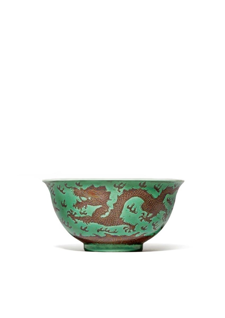 A RARE CHINESE GREEN AND AUBERGINE GLAZED BOWL