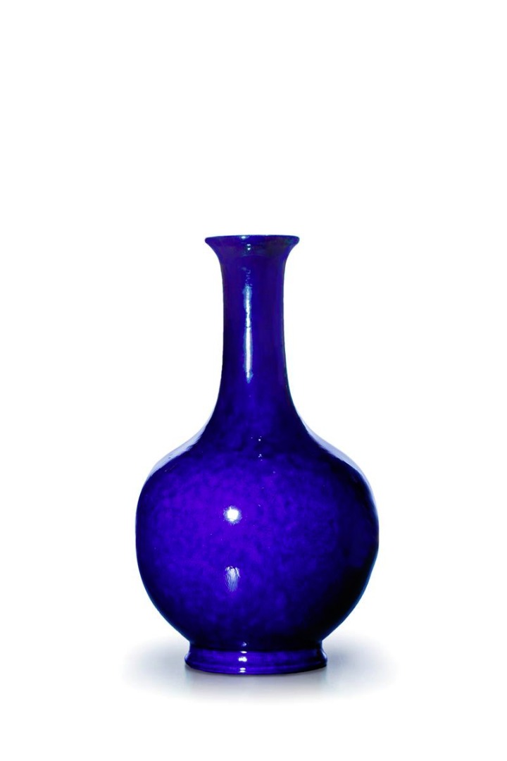 A CHINESE VIOLET-BLUE GLAZED ANHUA-DECORATED BOTTLE VASE SIX CHARACTER JIAQING SEAL MARK AND OF...
